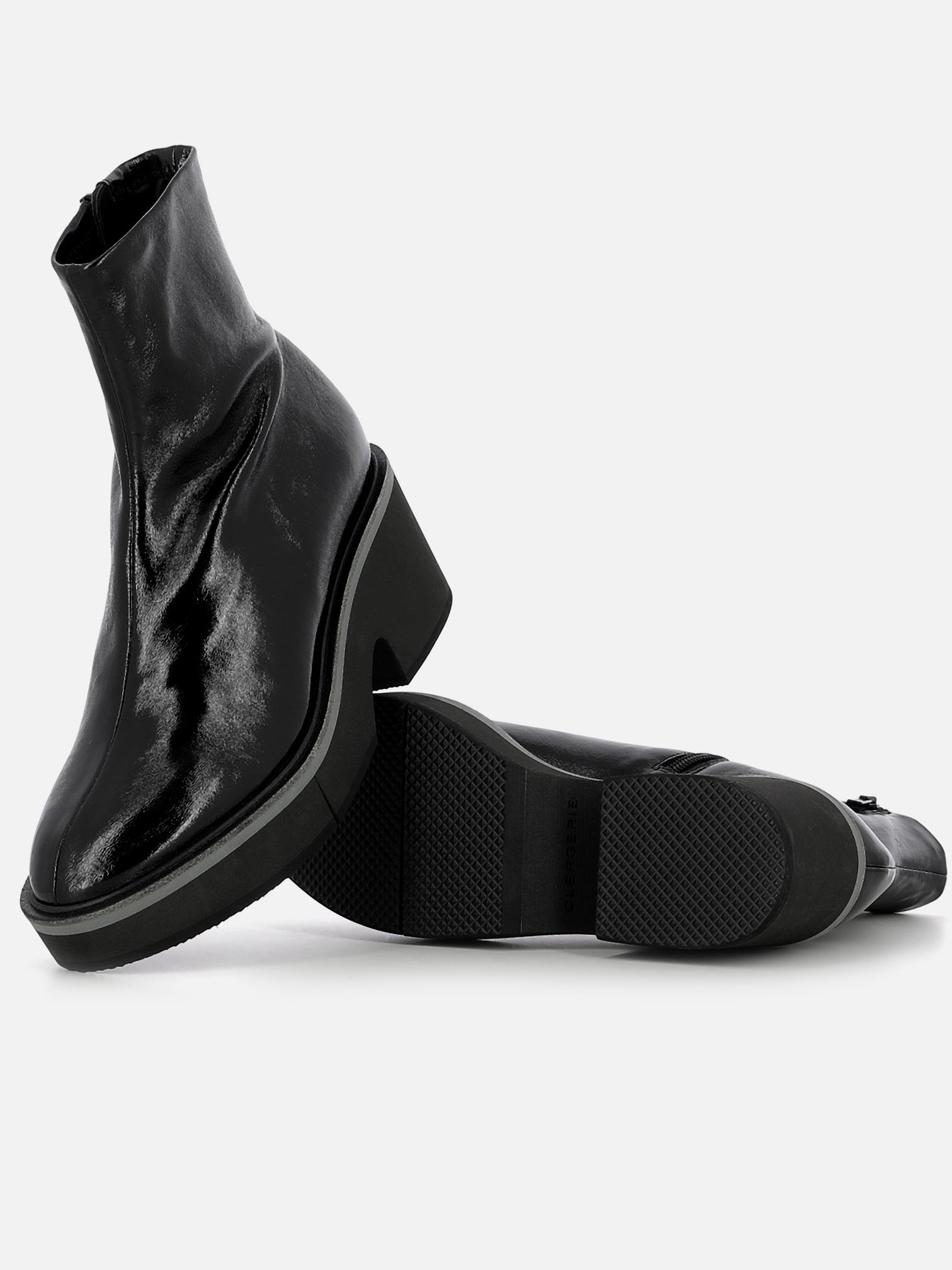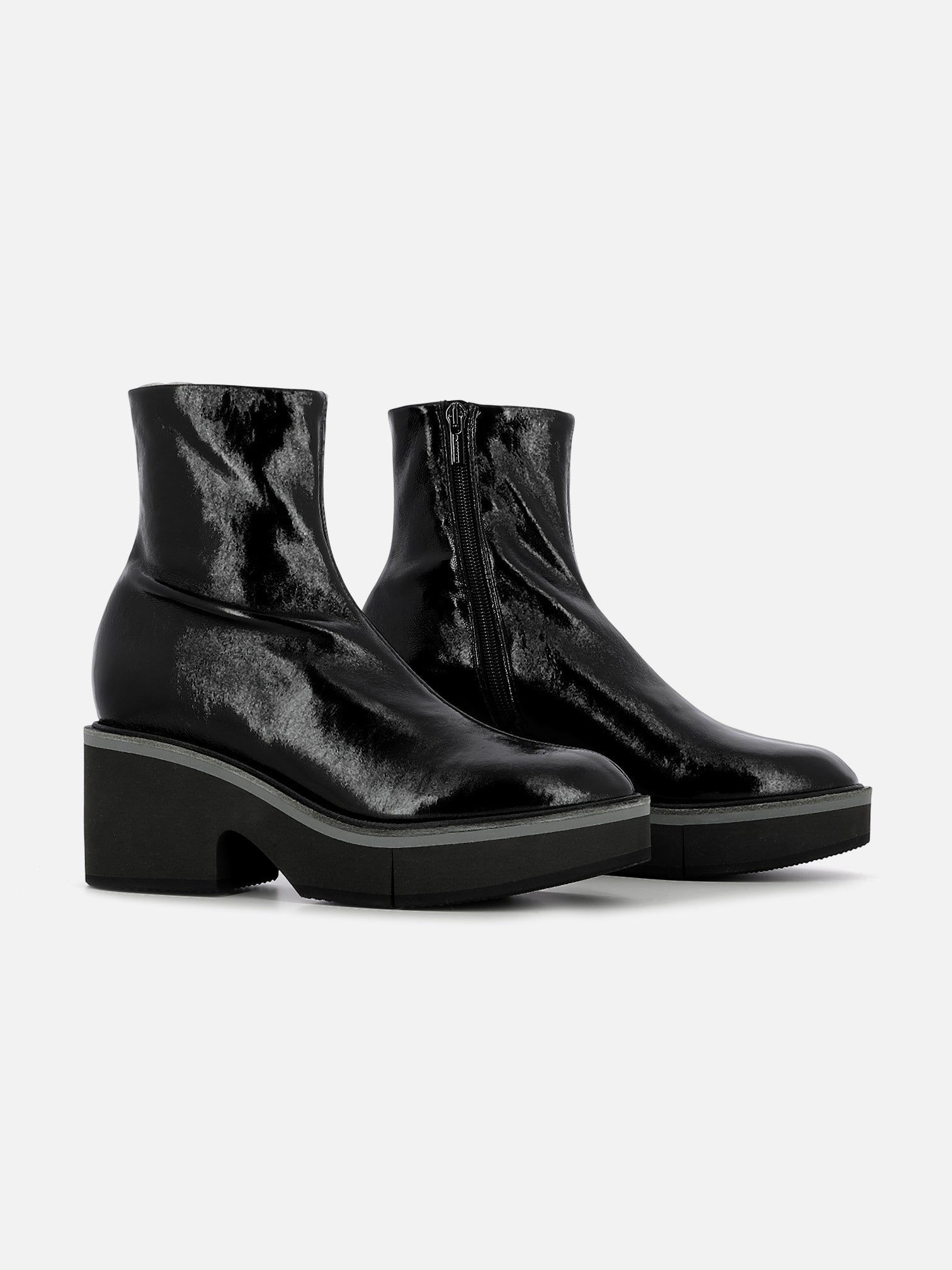 Upper: black stretch naplak lambskin / Lining: black goatskin lining / Sole: black welt, anthracite EVA platform, black sole
