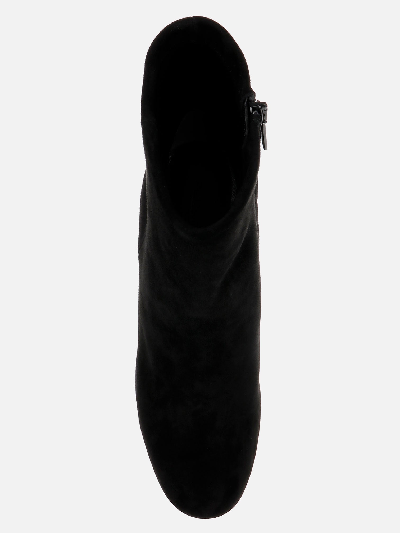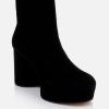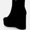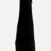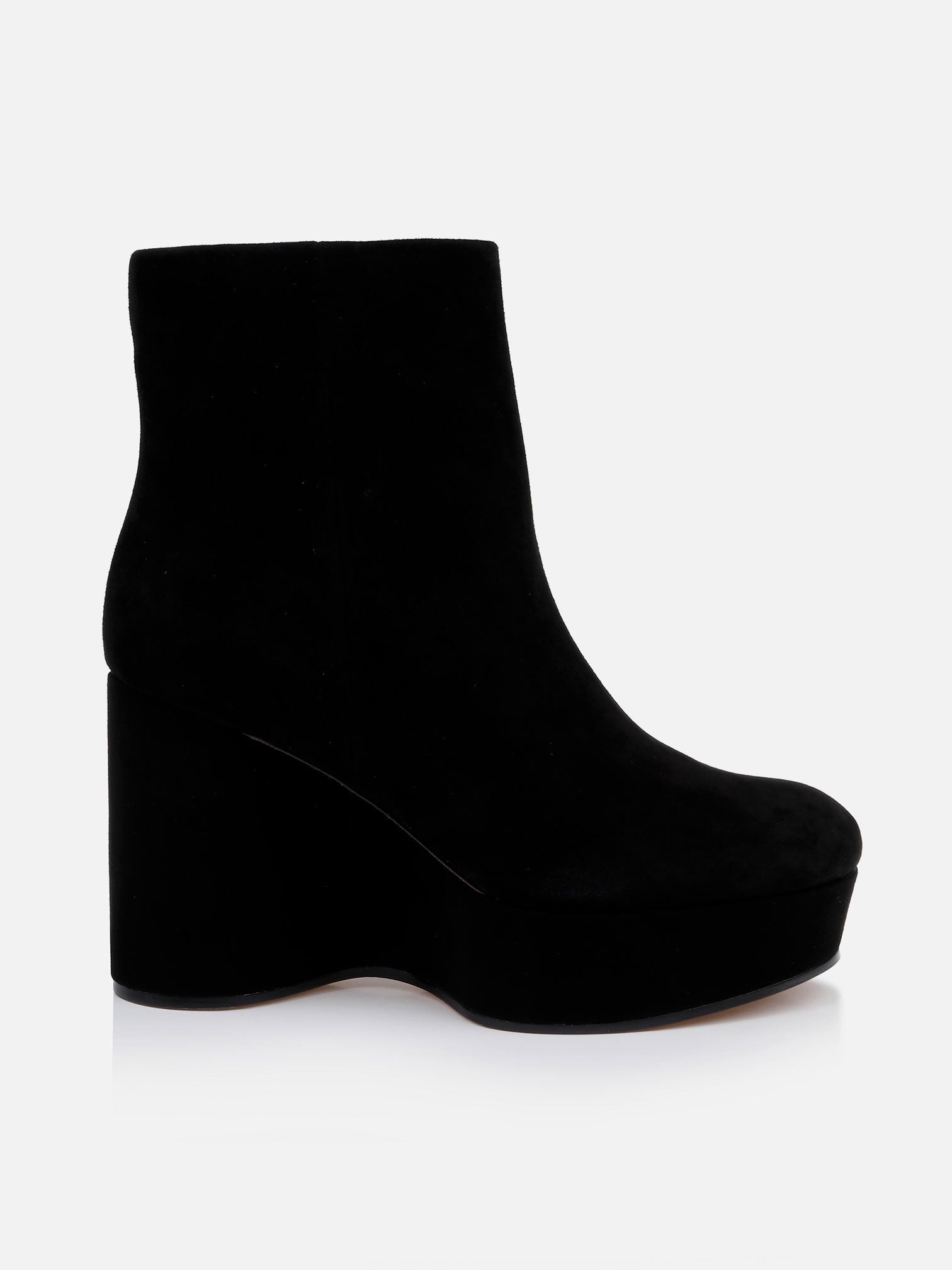 Upper: black suede goatskin / Lining: black goatskin lining / Sole: black suede goatskin covered platform, amber leather sole, black edge