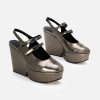 Upper: Gobi metallic glossed calfskin / Lining: Black goatskin / Sole: Gobi metallic glossed calfskin covered platform, arizona sole, black edge