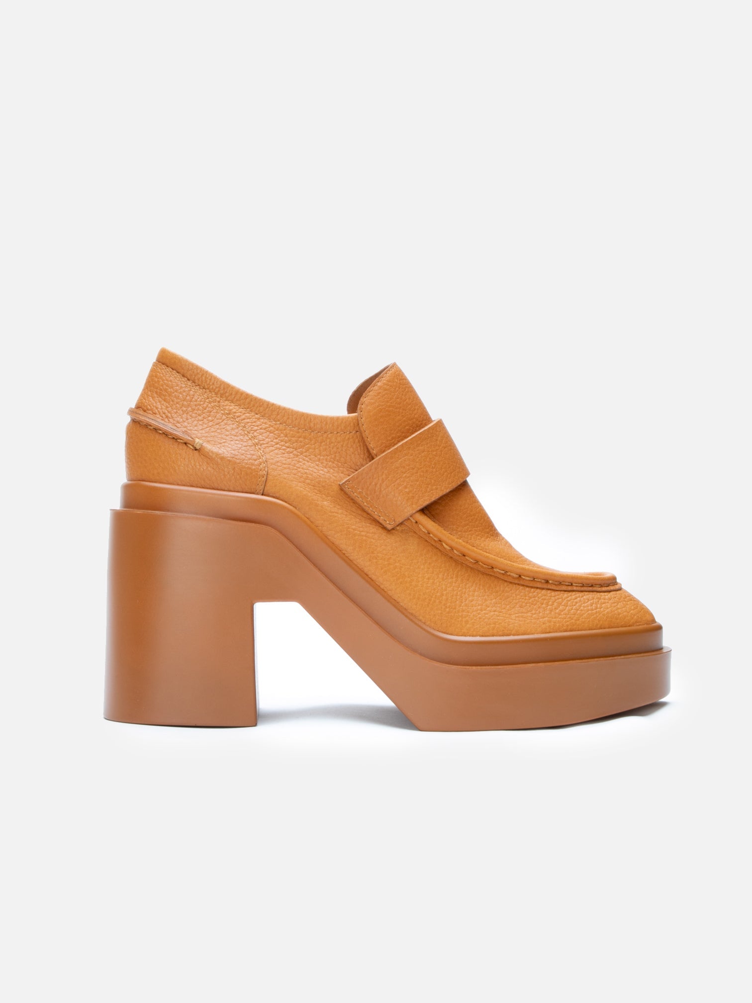 Upper: bush tumbled calfskin / Lining: gold goatskin lining / Sole: bush rubber platform
