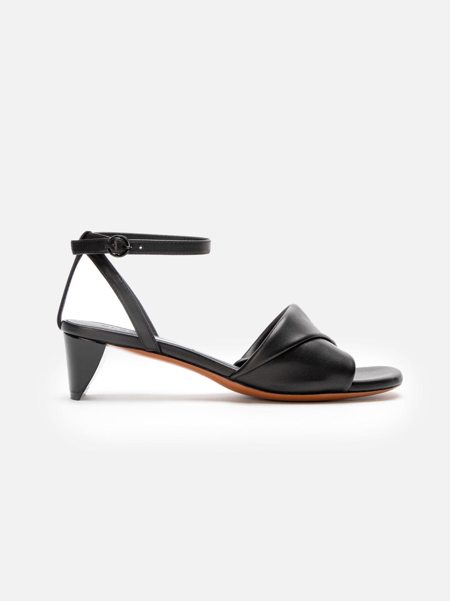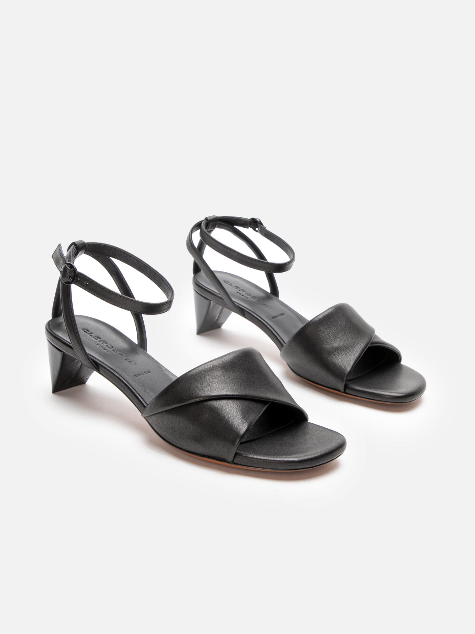 Upper: Black lambskin / Lining: Black goatskin / Sole: Black patent calfskin covered heel, amber leather sole, black edge