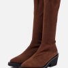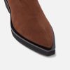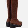 Upper: brown stretch suede lambskin / Lining: gold goatskin lining / Sole: black welt, black EVA platform, anthracite sole